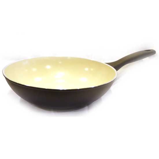 The finely manufactured wok showcases an excellent ceramic-coated structure, which enables evenly distributed heat for fine cooking. The thoughtfully designed ergonomic handle promotes a firm and comfortable grip on the wok. Cook a hearty meal for your friends or family with this ceramic-coated wok.