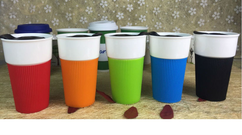 Featured here is a ceramic cup that comes in an ordinary design. The vibrant silicon sleeve not only offers a solid grip, but also highlights the cup and makes it eye-catching. A plastic lid is included to prevent spilling. This functional item is suitable for household and office use.