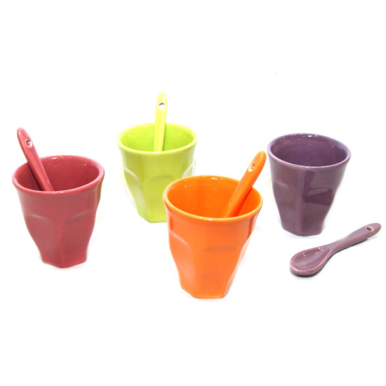 Highlighted here is a tableware set that comes with a cup and a tablespoon. They are well made of ceramic, allowing durable use. This ceramic cup set is ideal for every household.