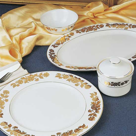 The ceramic dish is available in a round or oval shape. The rim of it is designed with glossy floral patterns. This dish is ideal for expensive cuisines.