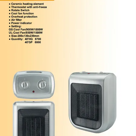 2000W Ceramic Table Fan Heater 2 Power Setting Thermostat with Anti-Freeze Overheat Protection Super Reliable Ceramic Heating Element Tio-Over Switch (Optional)