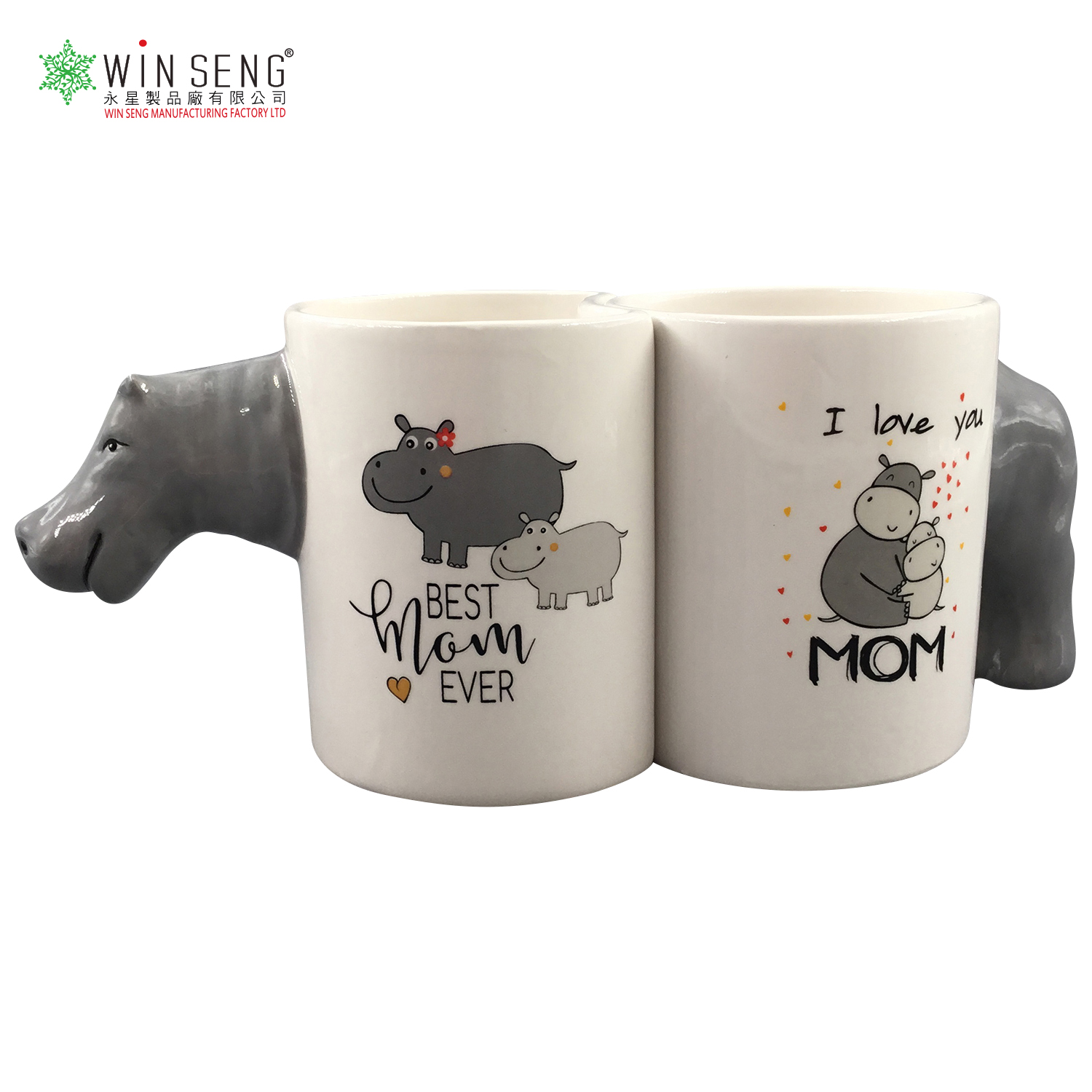 • Item Name: Ceramic Hippopotamus Mug with unique handle Parent-child set