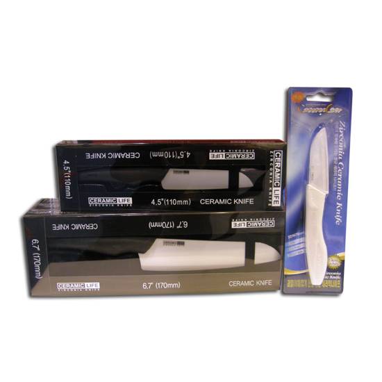 Featured are ceramic knives, available in both paper and plastic packaging. Designed with non-slip handles, making then easy and safe to use in kitchen.