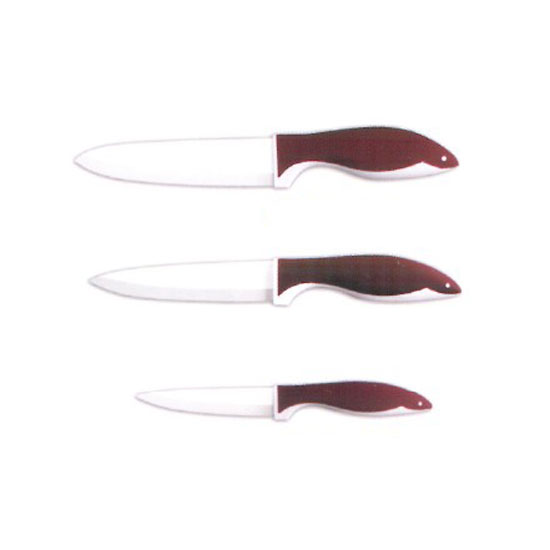 This is a knife set with a 6" chef knife, a 5" slicing knife and a 4" utility knife. It is made of quality ceramic for durability. This ceramic knife set is an ideal addition to your modern kitchen.
