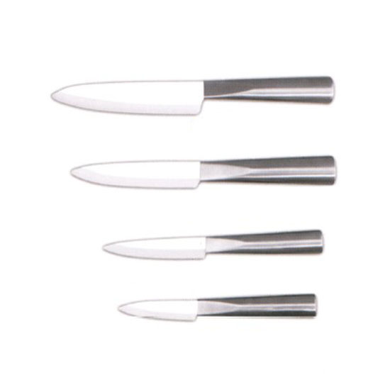 This knife set comes with a 6" chef knife, a 5" slicing knife, a 4" utility knife and a 3" paring knife. It is made of quality ceramic for durability. This ceramic knife set is easy and safe to use.