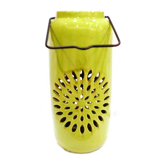 This is a handheld solar lantern with a hollow ceramic housing. The LED light source offers excellent illumination. The sturdy handle allows users carry it on the go easily.