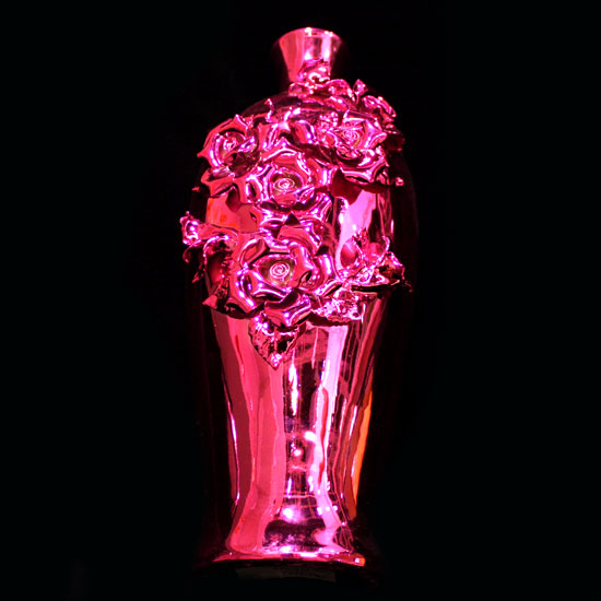 The ceramic vase here boasts a fashionable design for indoor decoration. The vase features embossment of flower patterns on the body. The whole body is plated in shiny pink to impress.