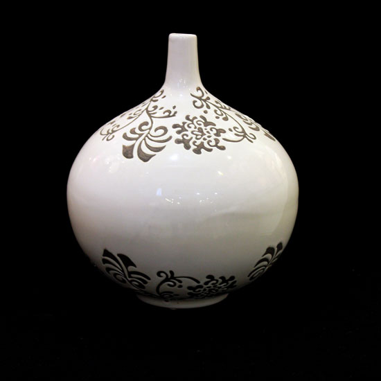 Highlighted is a beautiful vase made of quality ceramic. The vase is crafted in an onion shape with a narrow neck. The pure white body features flower patterns for a touch of elegance.