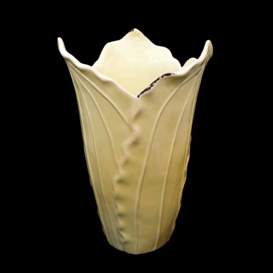 This enticing vase features leaf patterns with a protruding brim. It is constructed from ceramic for durability. This novel and refined vase is ideal for home decoration.