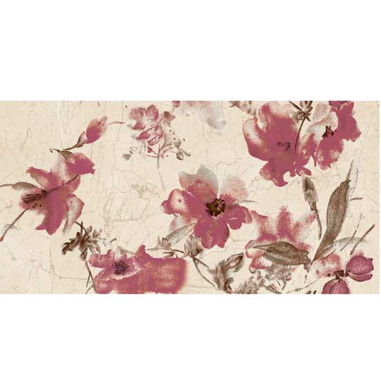 Make your wall as stunning as a floral painting with this piece of wall tile. The wall tile employs an oriental design with burgundy colored flowers and twisting leaves for an added stylish touch. The tile is recommended for homes or lobbies.