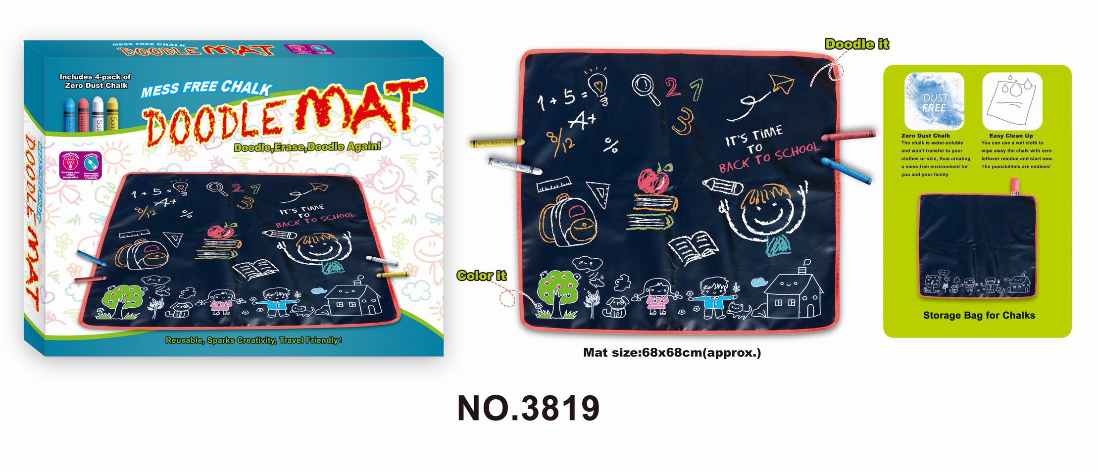 A sustainable blank slate for a child's creative energy! Our Doodle it & Go erasable JUMBO mat contain 4 water based chalk and are great for home, travel, dining out and more. All Doodle It & Go products come paired with four color chalk. Simply wipe clean with a damp cloth to erase, and create over and over again. Ideal for children 3 years & up.