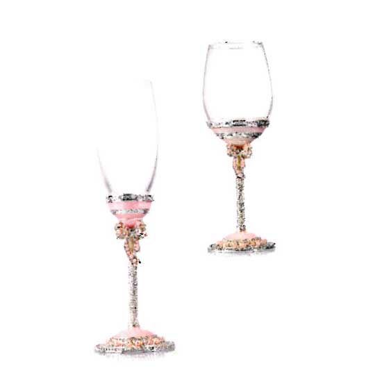 This glass boasts a gorgeous design that is especially for champagne. It has pink decorations with shiny silvery details all over the bottom and stem. The delicate details make this glass perfect for formal occasions.