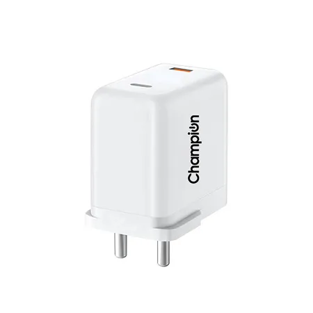 Champion 25W PD Wall Charger/Adapter with Dual Output (USB + Type-C) for iPhone & Android Devices (White)