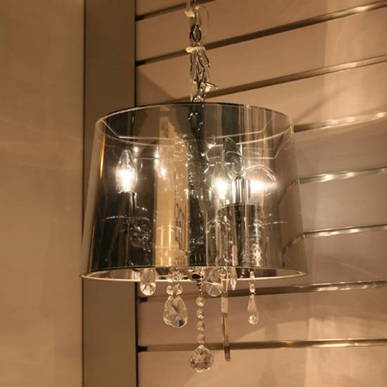 This is a chandelier with several pendant crystals beads. The shade is made of PVC material and with transparent design. This is a Heo-classic product and design.