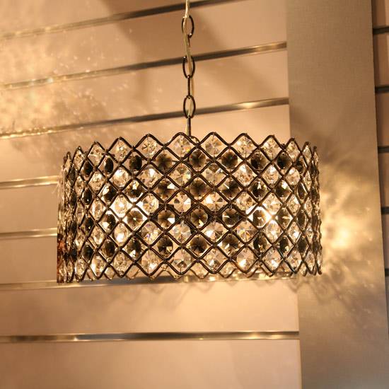 This is a chandelier with semi plush design. This ceiling light has steel finish. It is designed with crystals around the chandelier.
