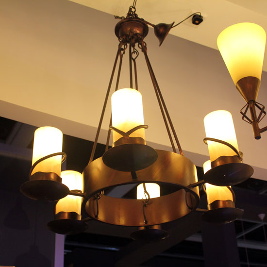 The chandelier comes with ceiling-mount design in a classic style. The hanging chandelier features seven lamps with white lampshades in brown finish. The chandelier is surely to deliver soft and warm illumination in any room.