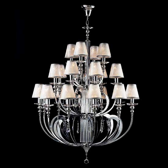 The delicate chandelier showcases an exquisite design with aesthetic beauty. It features multiple lampshades with a curved, sturdy lamp base. This gorgeous chandelier is ideal for hotels, lobbies, villas, etc.