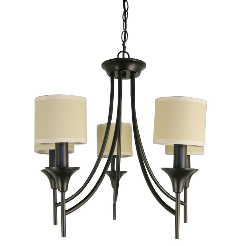 Chandelier with 5 lights and fabric shades. Suitable for indoor use.