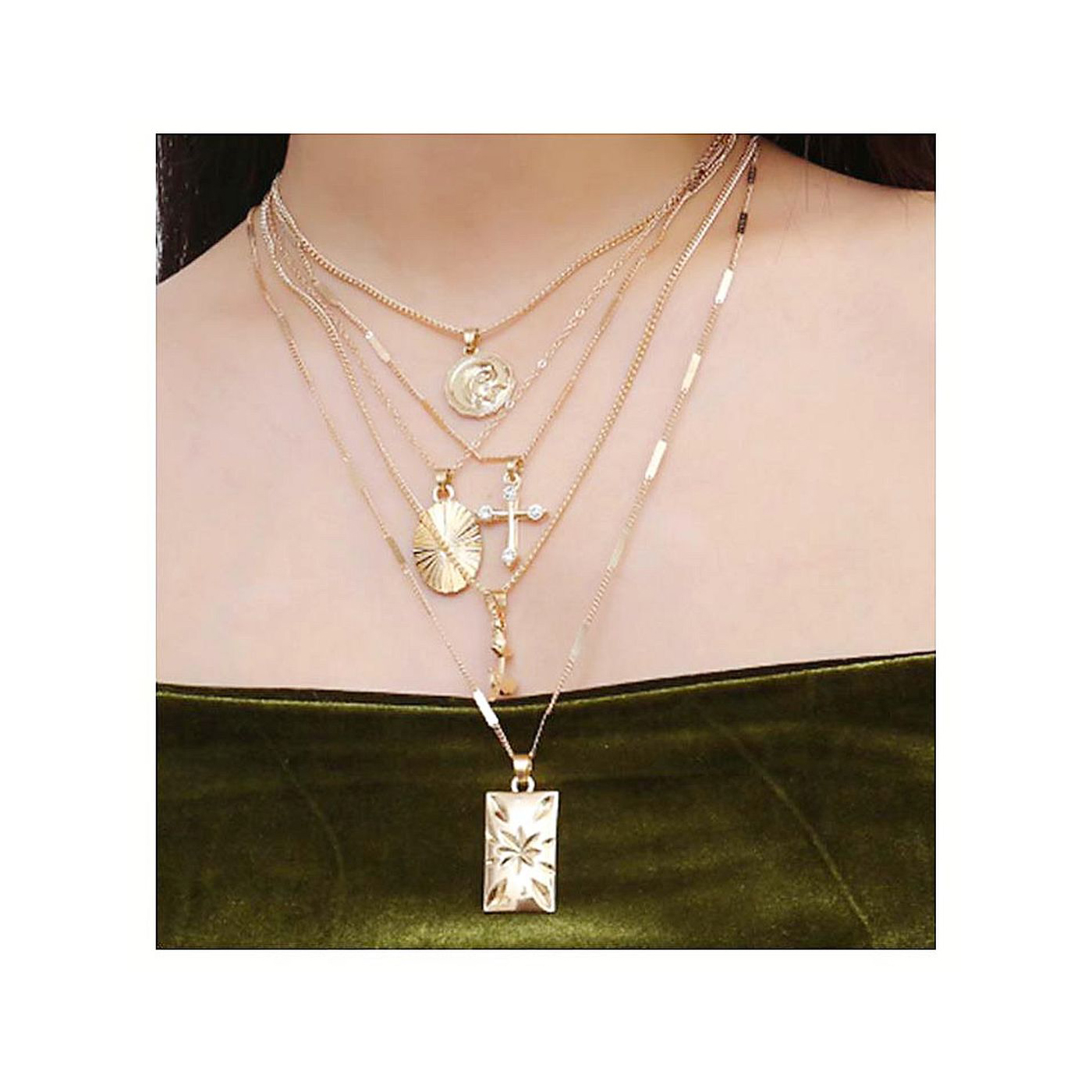 Charm Alloy Coins Parts Golden Plated Multi Strand Chains Necklace