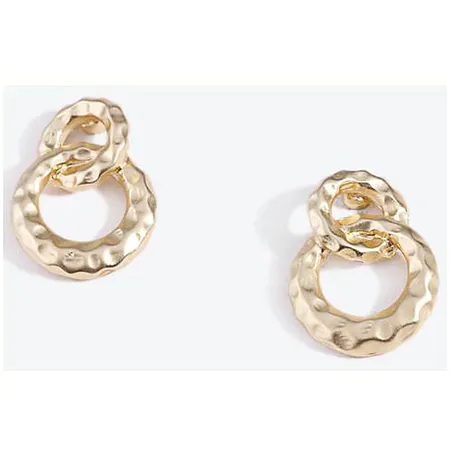 As shown is a high-fashion golden plated circle style and charm alloy parts drop earring.