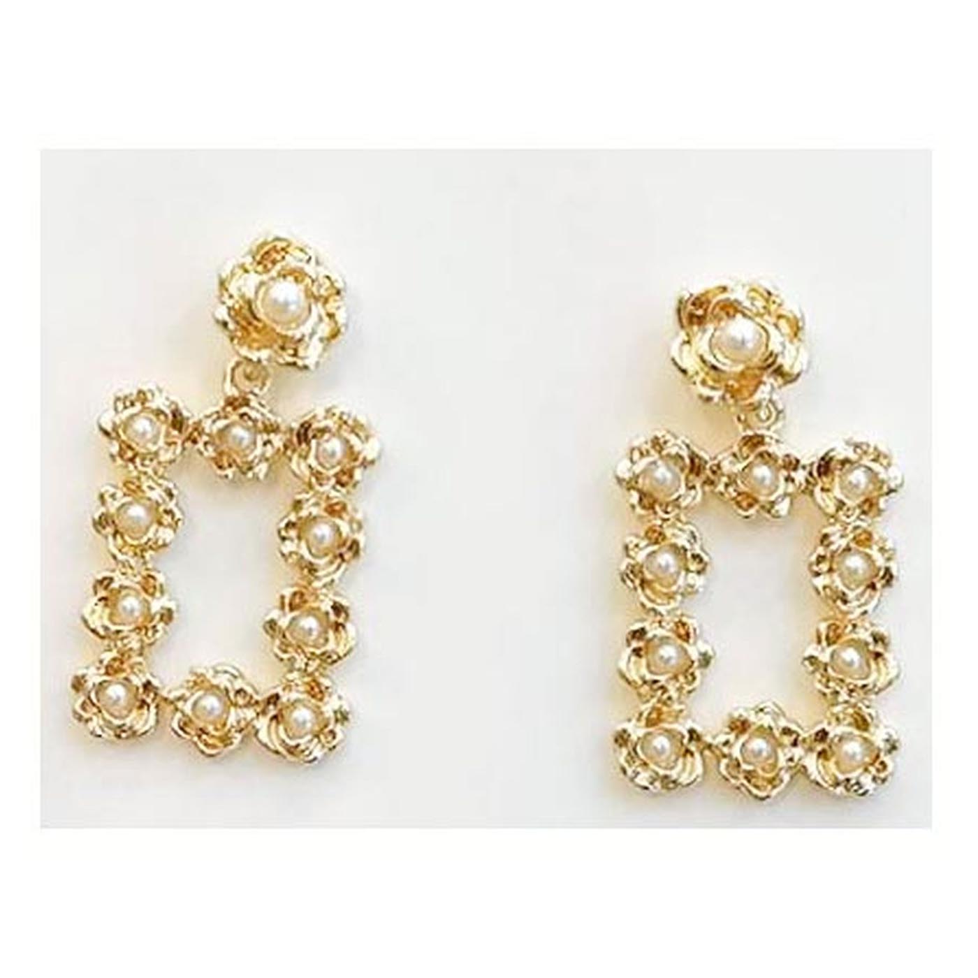 As shown is a high-fashion golden plated alloy parts and charm plastic beads drop earring.