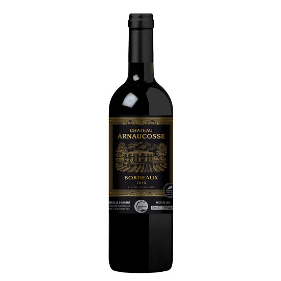 This is a bottle of Chateau Arnaucosse from Bordeaux, France. Made from finely selected grapes, this red wine has a fragrant nose and a rich taste. This 2010 wine is great for accompanying meat dishes.