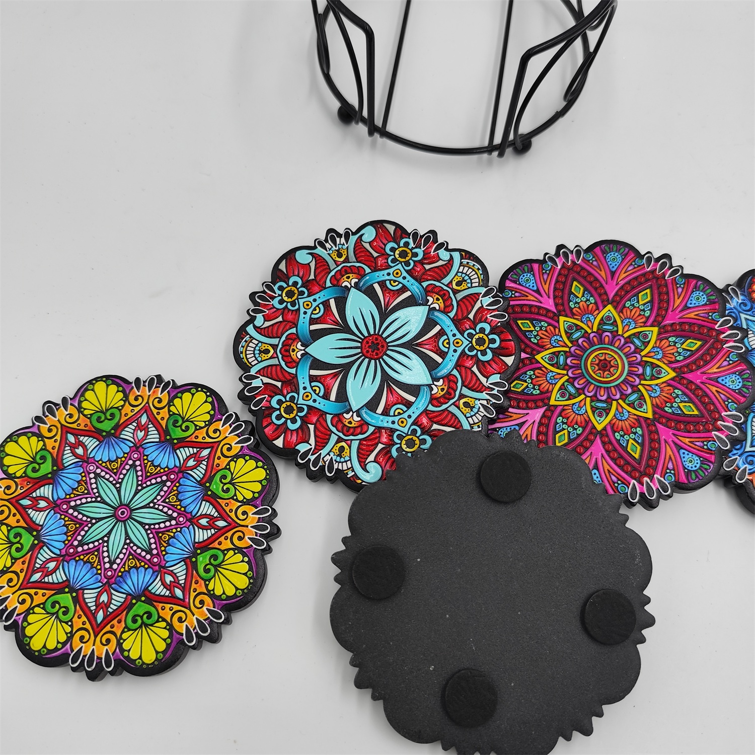 Non-Slip Cork Base: Each coaster is backed with a soft, natural cork layer that prevents sliding on smooth surfaces and protects delicate tabletops from scratches. The cork also absorbs minor moisture, keeping your surfaces dry.