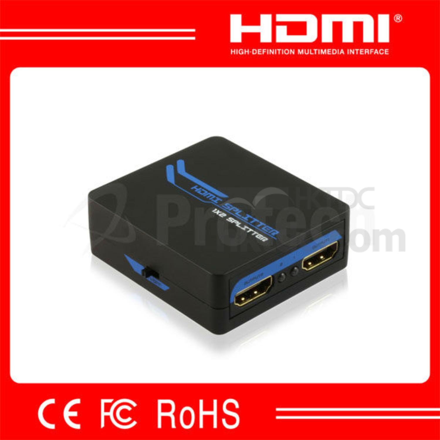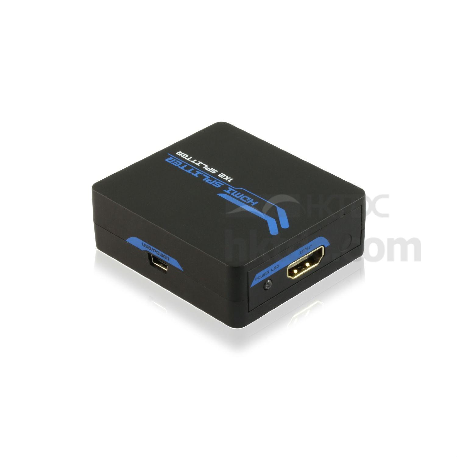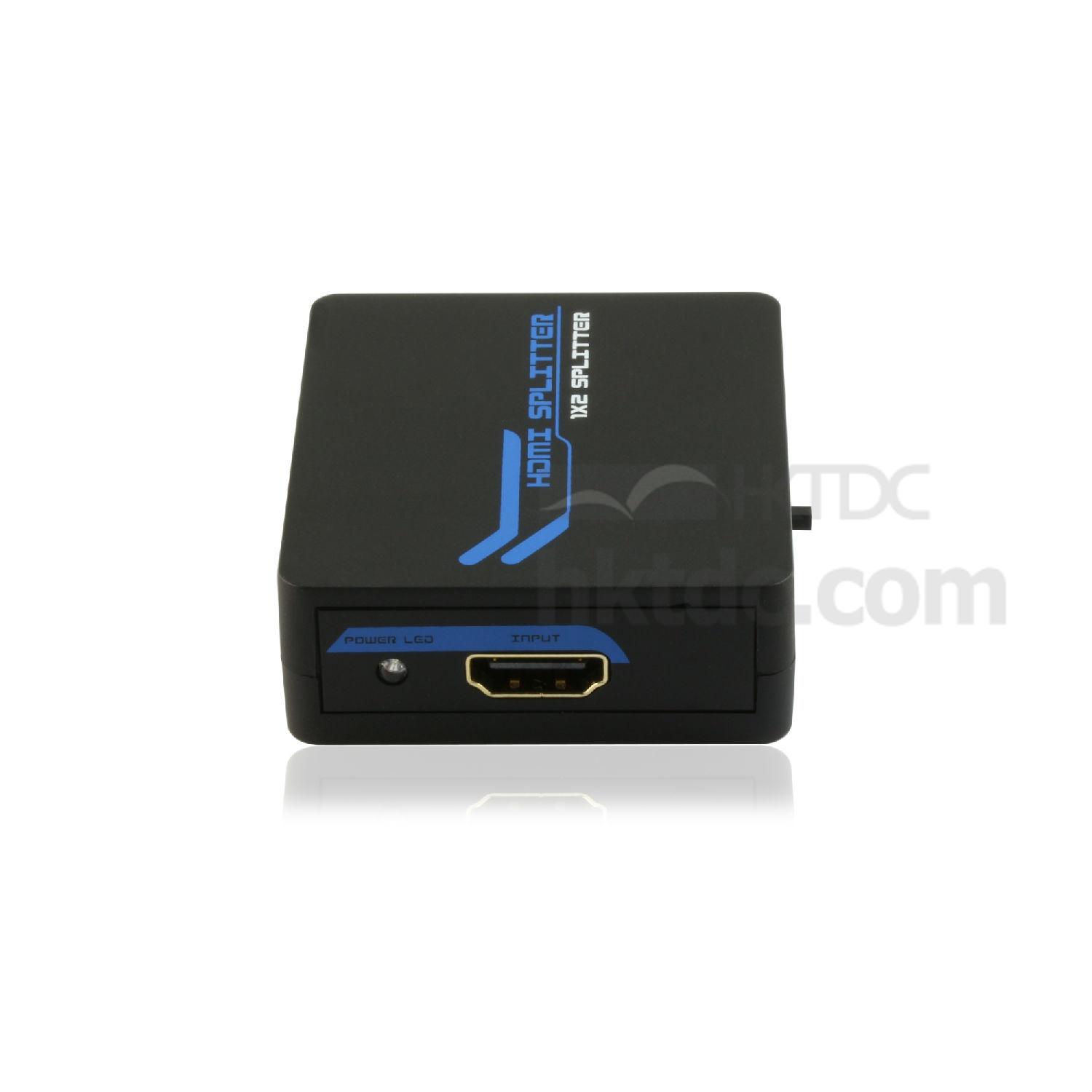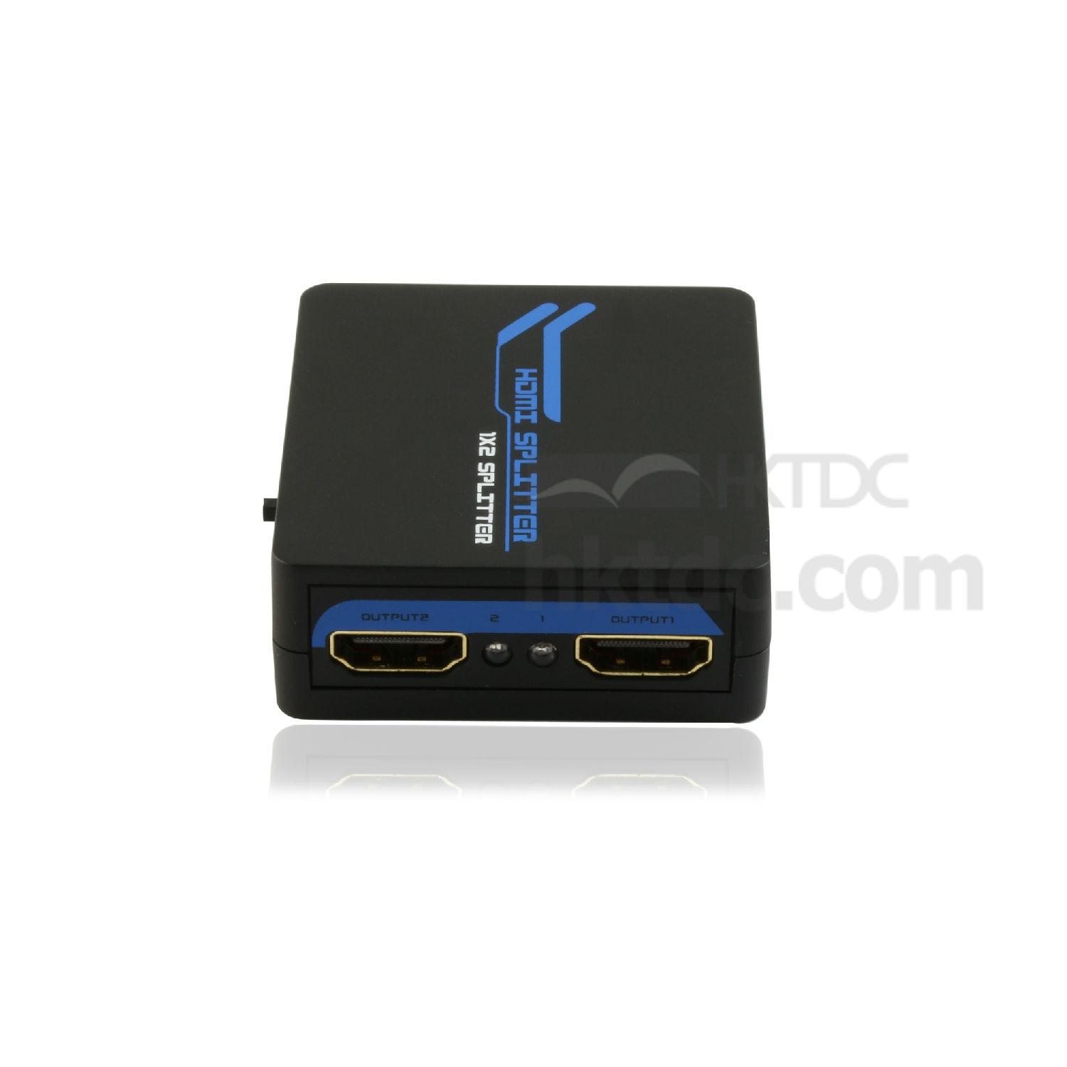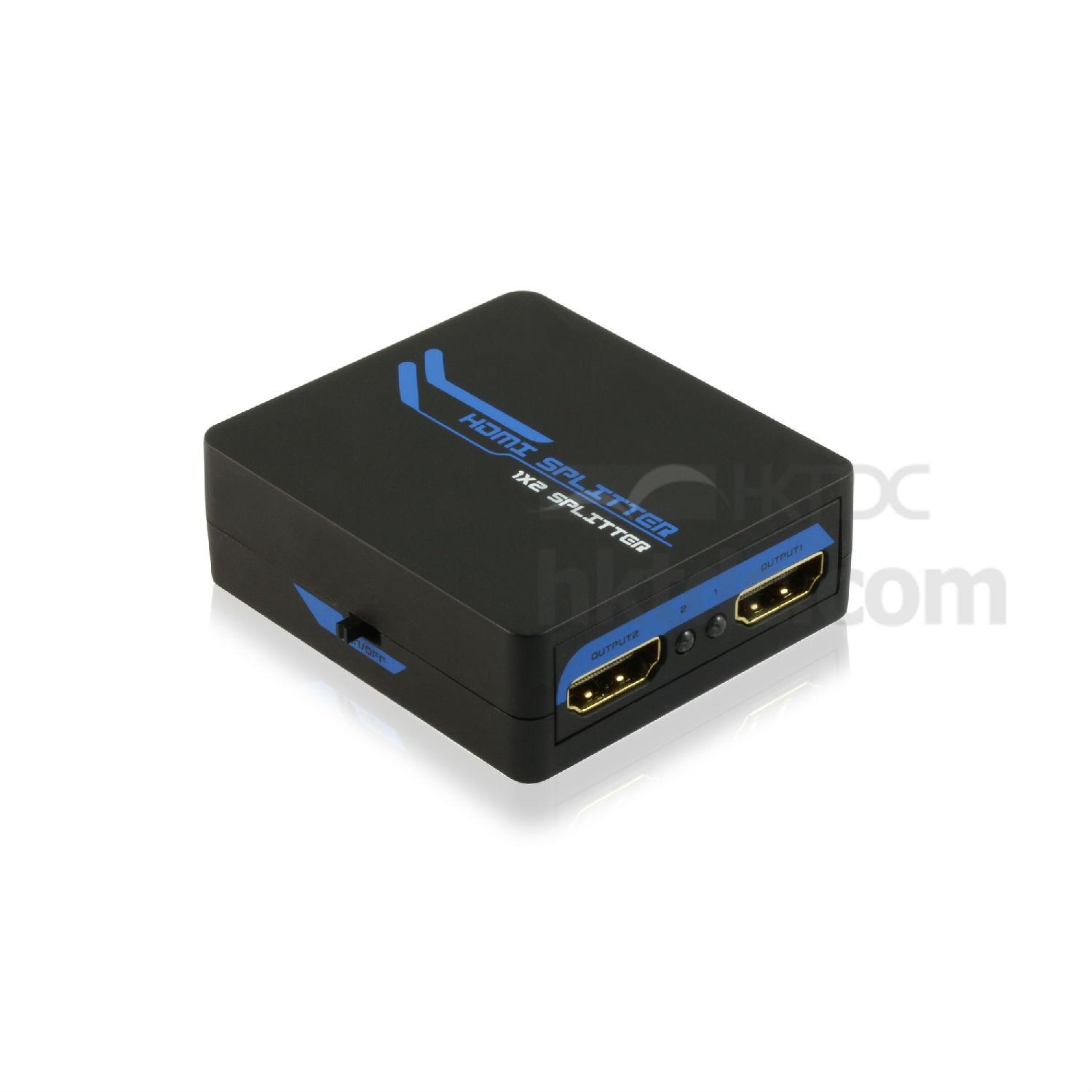 This splitter is a two outputs HDMI splitter. It distributes the HDMI input into two identical outputs, these two outputs are synchronized. It also has the ability of buffering and amplifying.