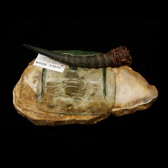 This tasteful cheese server set offers an attractive way to serve cheese as well as other condiments. It includes a natural wood plate and a transparent glass lid. The vivid polyresin horn adds an exotic touch to this cheese server set.