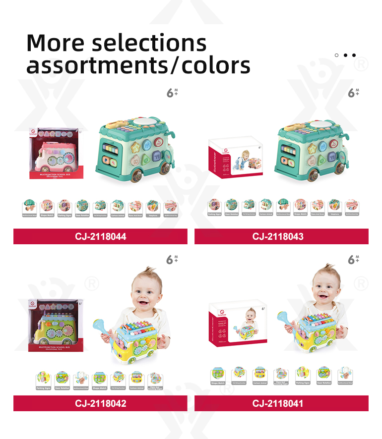 Chengji early educational montessori multifunctional simulated driving musical sound shape sorting baby bus car
