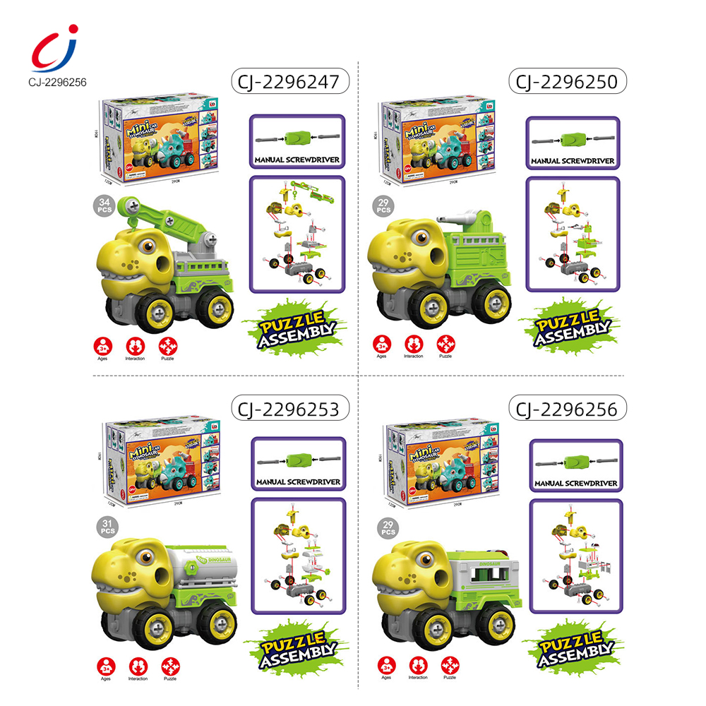 Chengji manual take apart dinosaur inertia toy engineering car plastic block assembling construction vehicle toy for kids