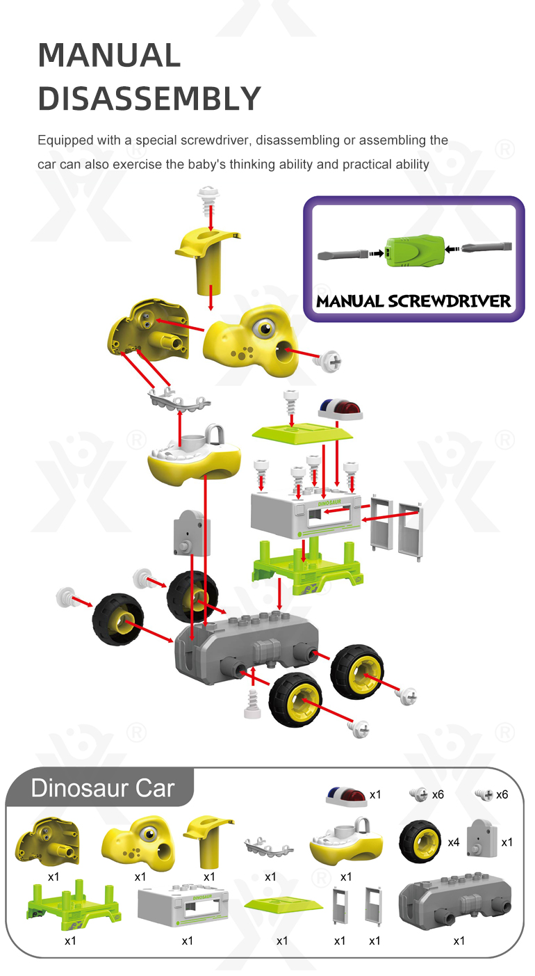 Feature 2: Kids diy take apart engineering dinosaur toy car