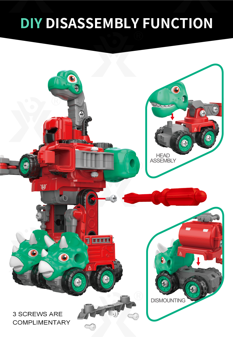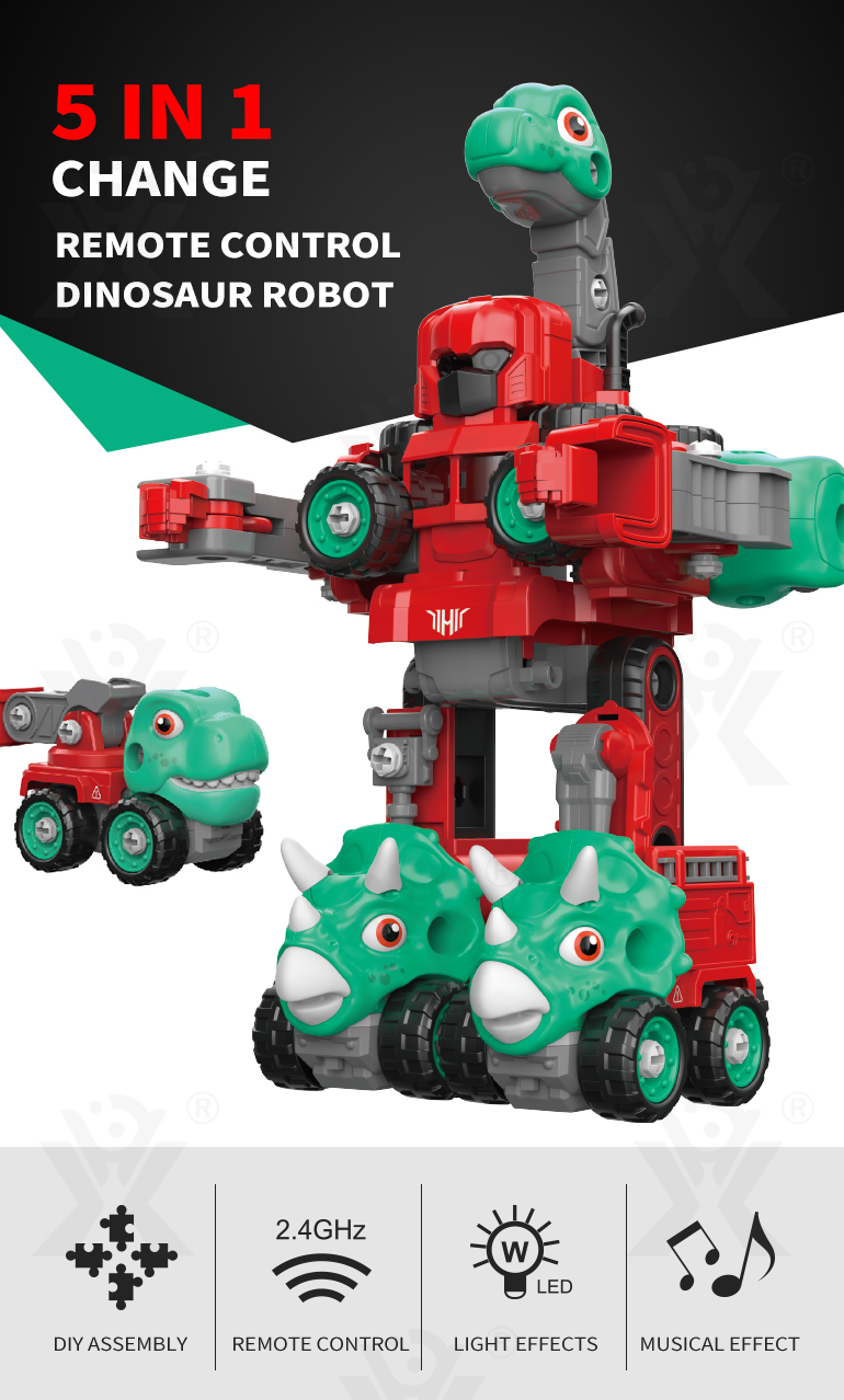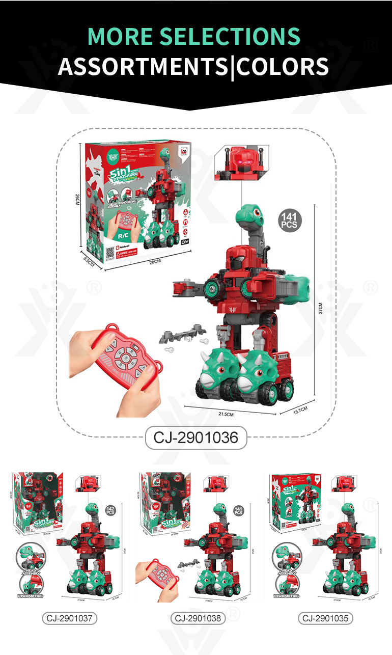 Chengji new diy assembly rc dinosaur car remote control take apart screw 5 in 1 deformation robot toys