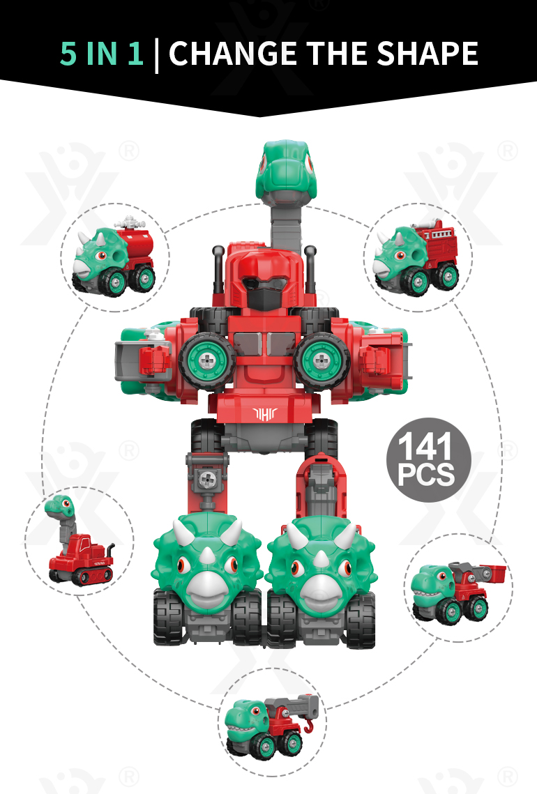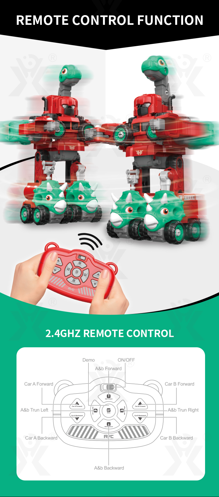 Feature 2: Kids diy assemble 5 in 1 deformation remote control dinosaur car