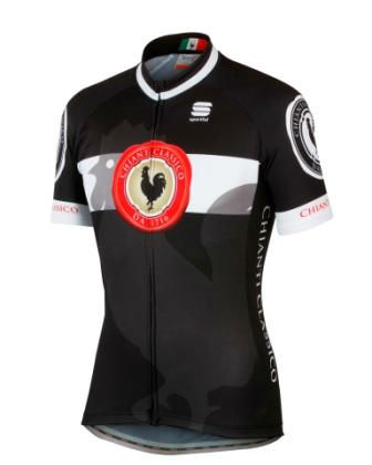 Enjoy a wonderful cycling experience with this elite bike jersey from Consorzio Vino Chianti Classico. This exquisite cycling outfit is made with jersey to achieve breathability during the bike ride. The black jersey is designed with and thick white stripe with the iconic Consorzio Vino Chianti Classico logo of black rooster inside the red seal on the chest. The thin stand collar and the invisible seams contributed a great deal to the sleek appearance.