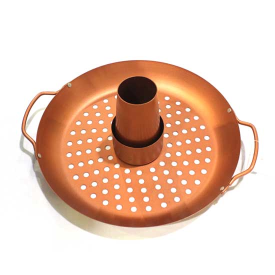 This unique grill pan is specially designed for toasting and grilling chicken. It can evenly distribute heat to keep chicken crispy, tender and succulent. Crafted of iron, the grill pan is applied with a non-stick coating for ease of cleaning.