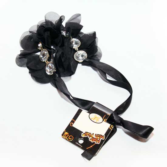 This adorable necklace features a mysterious, black design. Decorative petal-like fabric pieces and disk-shaped transparent adornments add charm to this necklace. Coming with a smooth, silky strap, this necklace adds charm and elegance to any wearer.