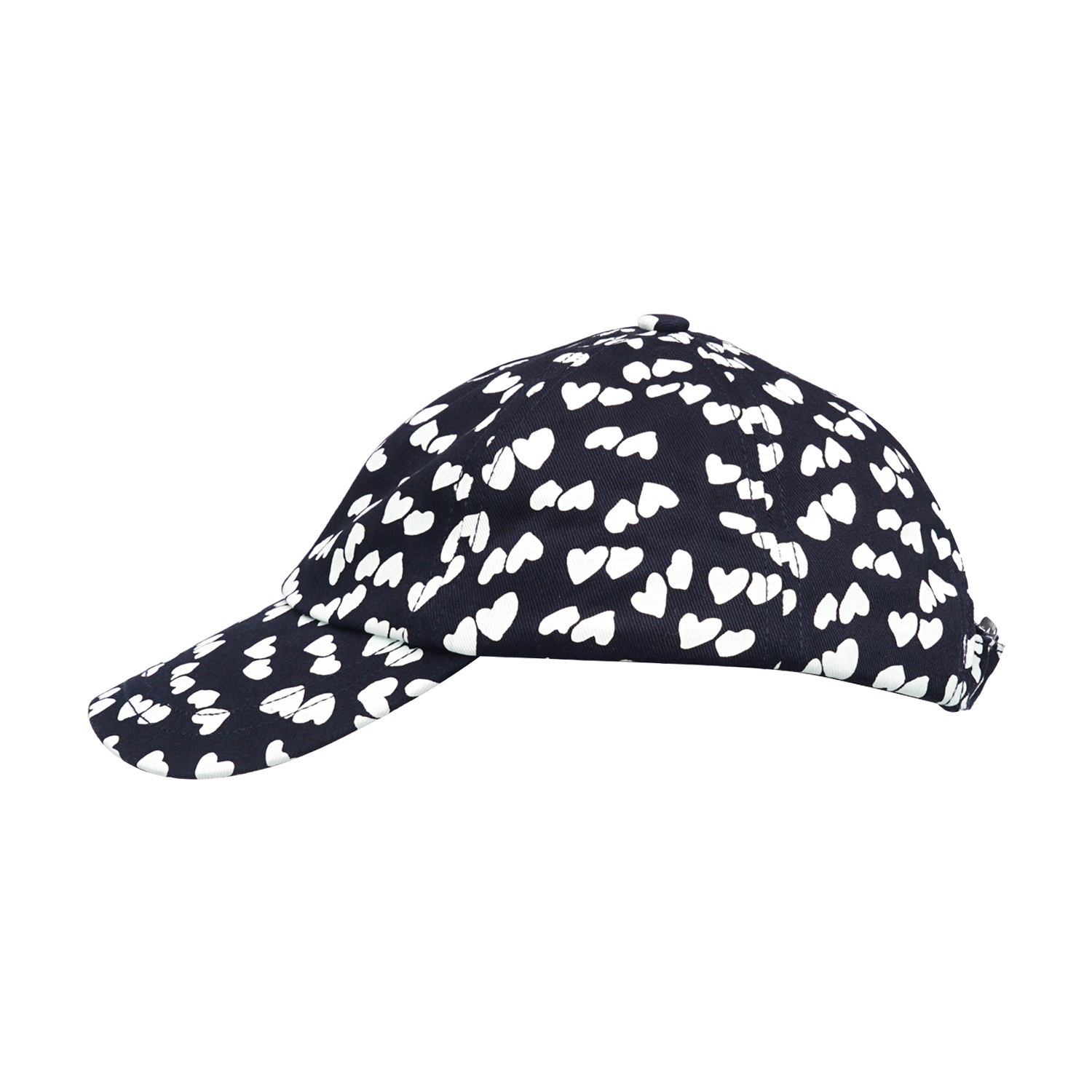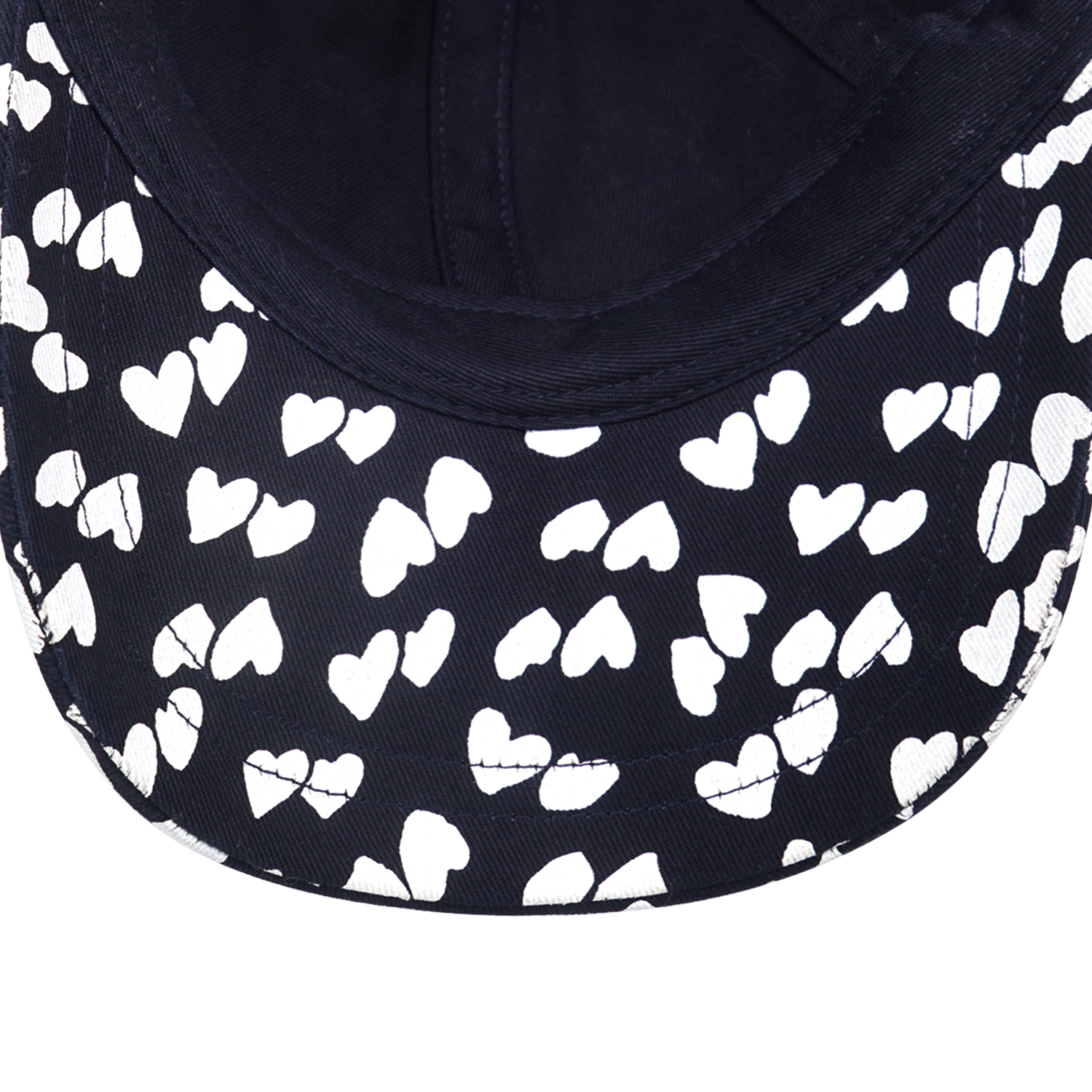 This black-and-white children’s cap features seamless heart prints all over, which is a versatile styling companion and a great addition to a kid’s wardrobe. The children cap is unstructured for a comfortable fit on the head and can be adjusted easily with its belt at the back.