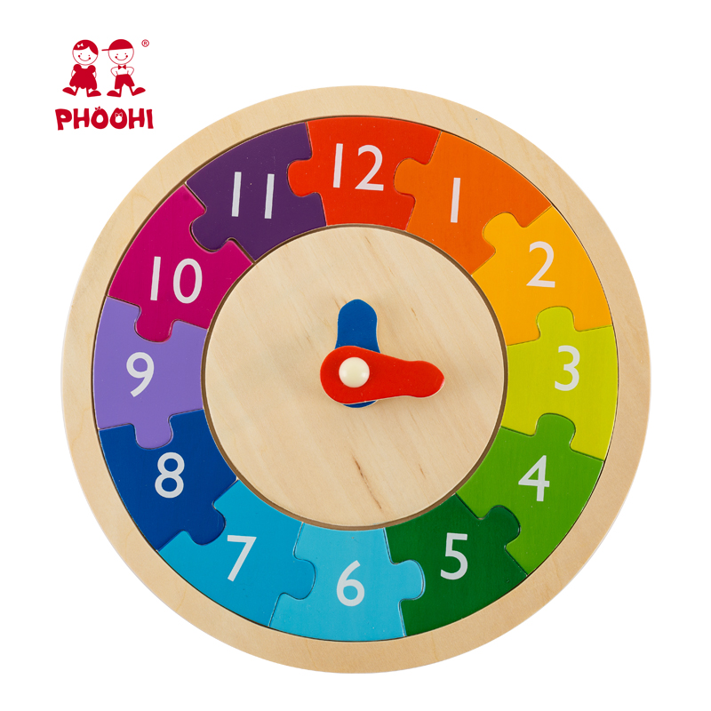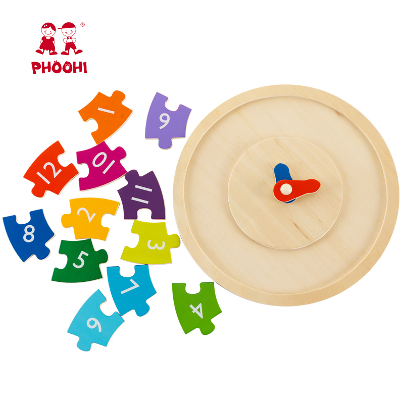 Children Educational Learning Montessori Number Puzzle Wooden Clock Toy for Kids 3+