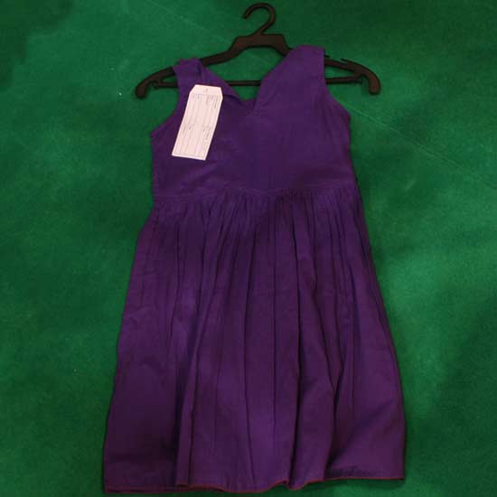 This elegant children's dress features a halter neck with a ruffled front. The beautiful draping gives stretchy comfort with a soft touch. The over-the-head style enables it to be put on easily without fumbling with snaps or zippers.