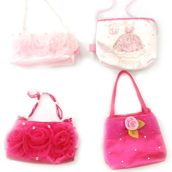 These lovely handbags are specially designed for little girls. Each one is finely adorned with shimmering beads and sequins or tulle roses for added charm. Children can use these bags and pretend to be little princesses.