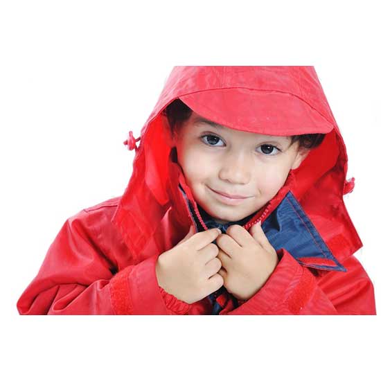 This children’s jacket boasts a sporty for outdoor wearing. The jacket is designed with a short-beam hood to shield children from sunlight. The sharp red jacket looks exceptionally smart on children.