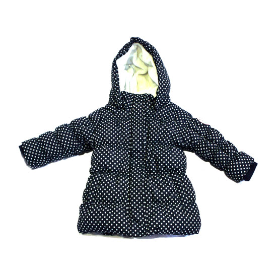 This is a children’s jacket with long sleeves, two side pockets and a functional hood. It is made of 100% cotton for a comfortable touch. This children’s cotton jacket is designed with delicate dotted patterns for an eye-catching look.