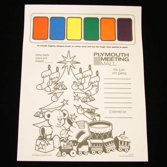 This children's painting set features a painting sheet and colors. It comes with a sketched drawing of Christmas elements like trees, stocks and gifts. The set keeps kids busy and lets them use their powerful imagination.