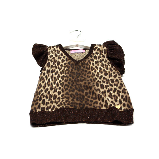 This brown children's top features a leopard pattern. The finely manufactured top delivers satisfying wearing comfort. The high-quality top is easy to wash and maintain.
