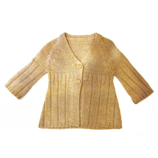 This lovely cardigan comes in a mild brown color, making it more lovable. Embellished by subtle strip pattern on the lower bodice and the sleeves, the V-neck cardigan looks more stylish. With two buttons at the front opening, the brown cardigan looks more refreshing and special. Complete the children's wardrobe with this beautiful cardigan.