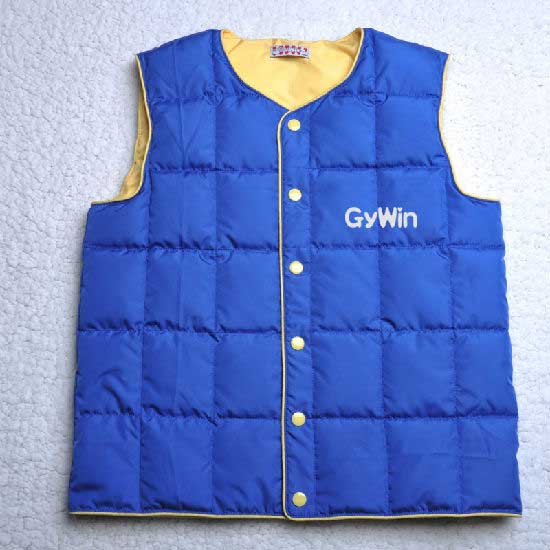 This is a blue-toned children' s vest that features a sweet-heart color with a padded design for enhanced comfort. This sleeveless vest is designed to keep your child warm and snug in cold days. The color-contrasting lining and exterior showcase a striking effect.