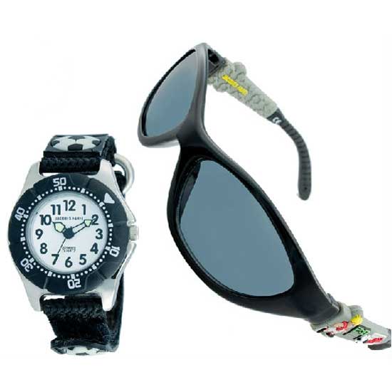 This branded children's watch and sunglasses set is a delight choice of gift for kids. The quartz analog watch features a rotating bezel, Arabic numeral markers and luminous watch hands. The sunglasses are accented with embossed cartoon graphics on the temple arms to attract consumers.