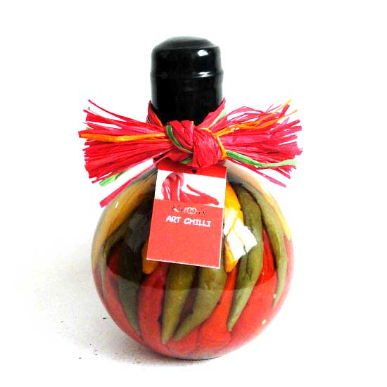 Featured here is a stylish chili bottle that is designed to add a touch of uniqueness to your dining table. Having a spherical design with an abstract pattern, this chili bottle is as beautiful as it is functional. This fine chili bottle makes the perfect gift for your friends.