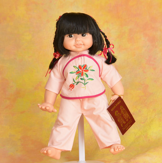 This Ruby doll is dressed in a traditional Chinese outfit. She is made from non toxic materials, so children can enjoy playing with her. This is an ideal gift for little girls.